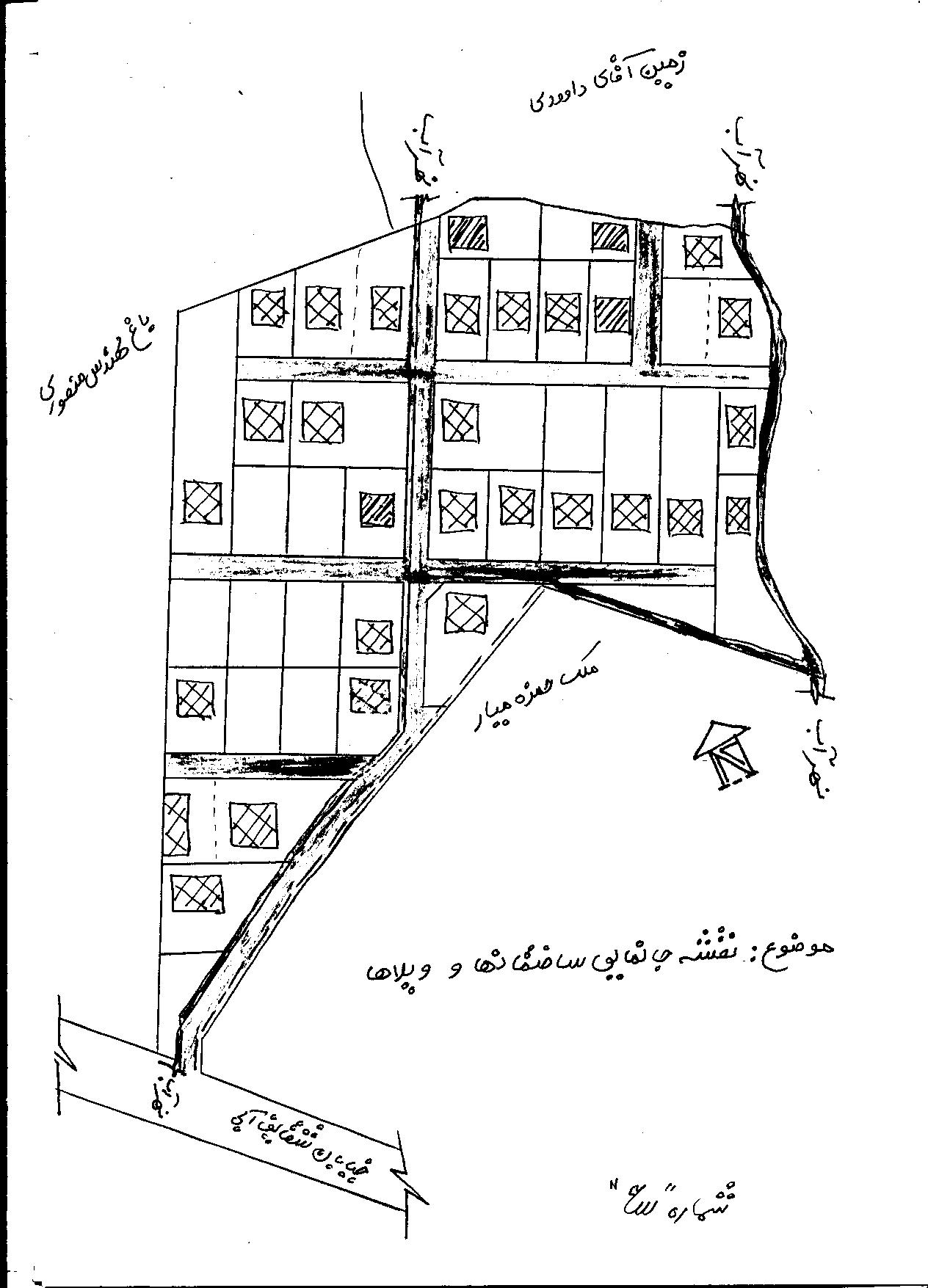 پلان شماره 2 - نقشه جانمایی قطعات برداشت وضع موجود- نام مالکین