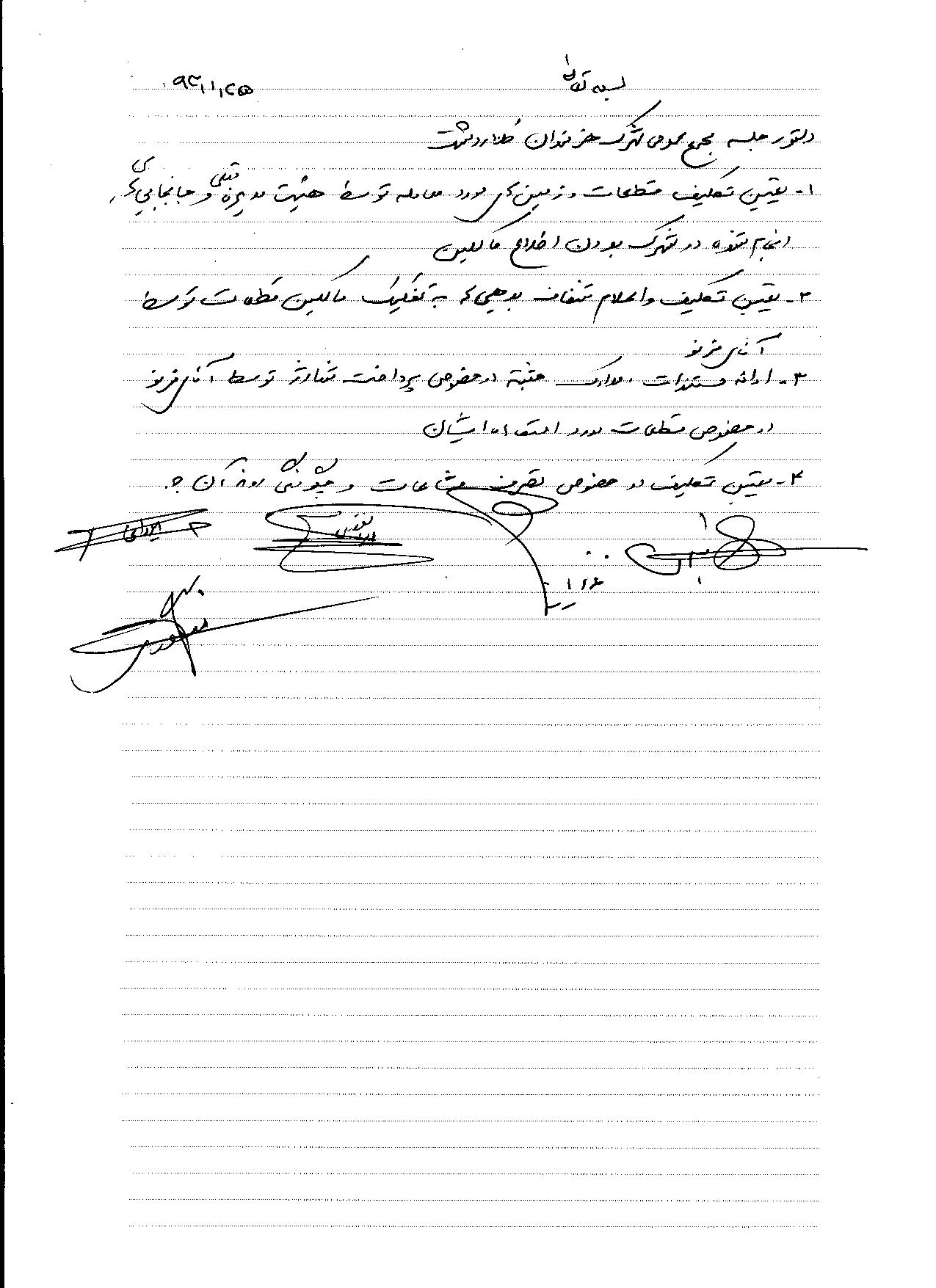 1- تعیین تکلیف قطعات و زمین های مور معامله توسط هییت مدیره قبلی و جابجایی های انجام شده در شهرک بدون اطلاع مالکین