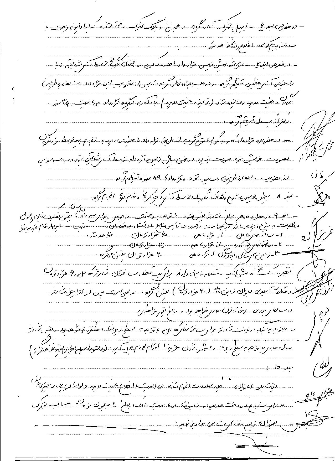 - به هییت مدیره ماموریت داده شد تا نسبت به زمین های مشاعات شهرک  آنچه که موجود است و آنچه به دیگران تحویل شده است تعیین تکلیف و به اعضاء گزارش نمایند .